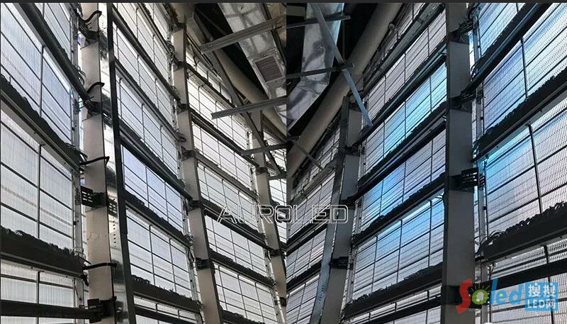 我司擁有豐富的項目實施經(jīng)驗,曾操作過多個異形玻璃幕墻項目,公司可結(jié)合異形幕墻結(jié)構(gòu)定制透明屏箱體,“隱形”安裝,使透明屏與周邊建筑物完美融合,不影響室內(nèi)采光和觀看視線,且不會對原有幕墻承重造成太大壓力,提升了玻璃幕墻的商業(yè)價值。接下來小編就給大家分享幾個我司異形玻璃幕墻LED透明屏項目效果。