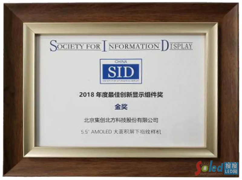 3月29日,2019國際顯示技術(shù)會議(簡稱ICDT 2019)六大獎項揭曉。集創(chuàng)北方憑借“ 5.5”AMOLED大面積屏下指紋樣機”獲得大會頒發(fā)的2018年度最佳創(chuàng)新顯示顯示組件獎金獎。