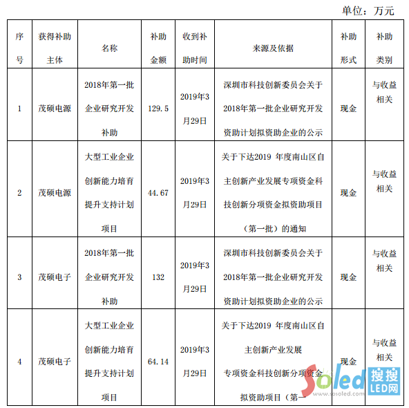 關(guān)鍵詞: 茂碩 三安光電 政府補(bǔ)助