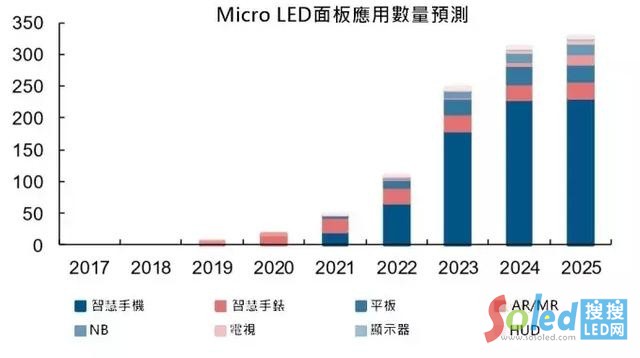 不過,即使 Micro LED 良率問題無法有效改善,但 Yole 還是認(rèn)為今年 Micro LED 應(yīng)用將可在小尺寸市場中見到身影,特別是穿戴式消費(fèi)性電子,隨后在 2021 年開始滲透至智能手機(jī)與電視領(lǐng)域,而智能手機(jī)將是 Micro LED 顯示技術(shù)運(yùn)用最大的領(lǐng)域。