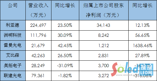 六大上市LED顯示屏企業(yè)2019年第一季度業(yè)績(jī)情況表