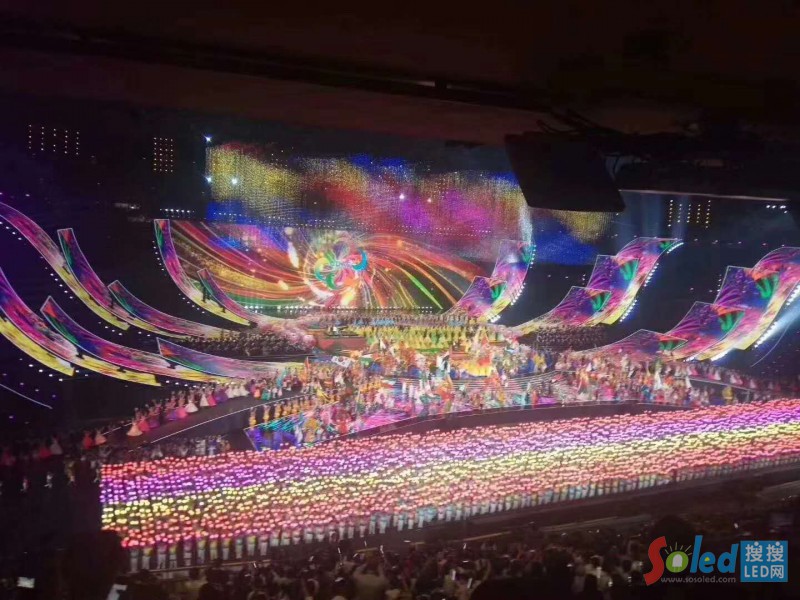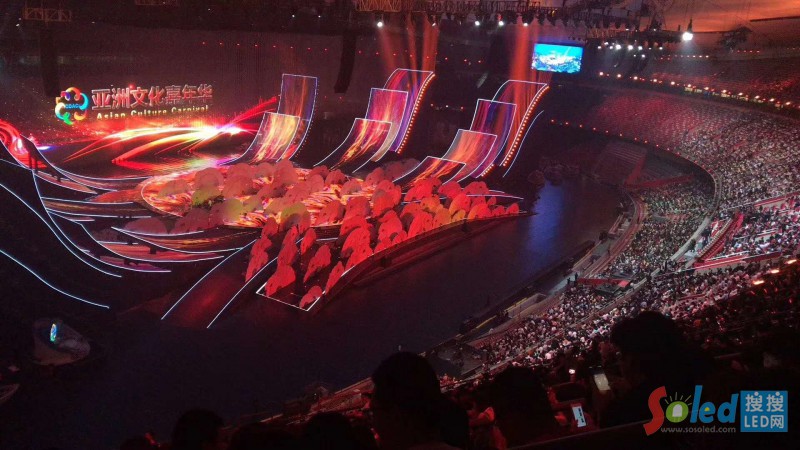 晚會(huì)現(xiàn)場(chǎng),15000多平方米的主舞臺(tái)煥彩多姿,盡情展示了亞洲各個(gè)國(guó)家、各個(gè)民族的迷人風(fēng)采。超過(guò)10000平方米的LED顯示屏綻放在鳥巢中央,時(shí)而如一朵巨大的牡丹花,盛開18朵花瓣,時(shí)而如系著云霞披風(fēng)的孔雀, 煽動(dòng)著壯碩的羽翎,可謂美輪美奐、萬(wàn)眾矚目。這一國(guó)家盛事的舞臺(tái)顯示由光祥科技打造,而舞臺(tái)“C位”的巨型主顯示屏和鳥巢“C位”的超炫“花瓣?duì)?rdquo;顯示屏均由國(guó)星RGB事業(yè)部的1921戶外顯示器件華麗打造。