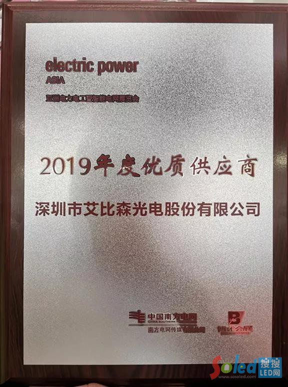 值得一提的是,在開(kāi)展當(dāng)日的晚宴上,艾比森依靠在顯示領(lǐng)域的突出表現(xiàn),獲得主辦方頒發(fā)的“2019年度優(yōu)質(zhì)供應(yīng)商”榮譽(yù)。這也是電力行業(yè)對(duì)于艾比森LED顯示屏在電力領(lǐng)域所做貢獻(xiàn)的專(zhuān)業(yè)認(rèn)可。
