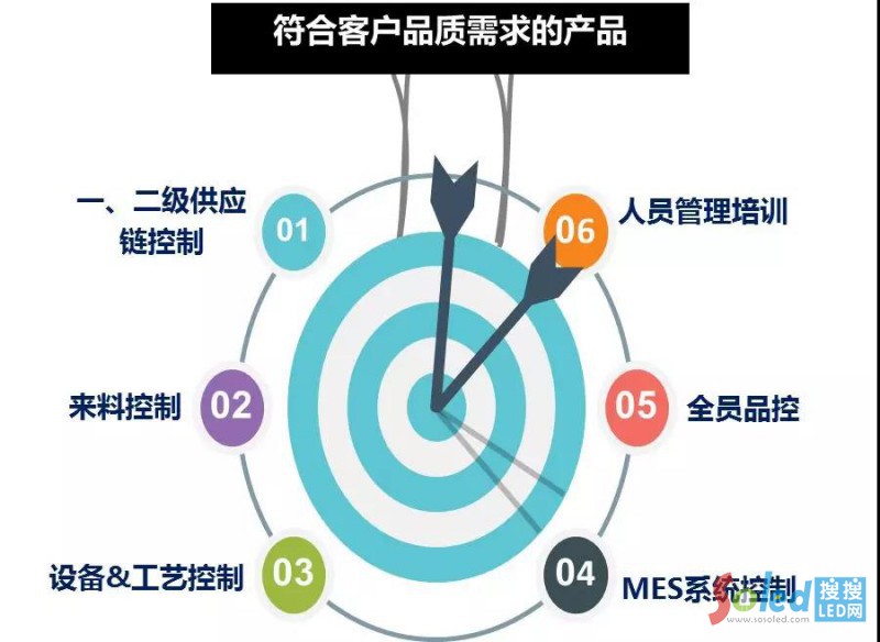 在供應(yīng)鏈方面,通過(guò)控制一級(jí)供應(yīng)鏈和二級(jí)供應(yīng)鏈確保材料零缺陷;通過(guò)控制設(shè)備、工藝、測(cè)試流程生產(chǎn)高品質(zhì)產(chǎn)品,通過(guò)不斷優(yōu)化設(shè)備、工藝流程、測(cè)試手段及全員品控管理達(dá)到品質(zhì)零缺陷的終極目標(biāo)。同時(shí)兆馳節(jié)能要求供應(yīng)商按同樣的管理要求管理其供應(yīng)鏈,以保證兆馳節(jié)能供應(yīng)鏈的整體品質(zhì)可控。