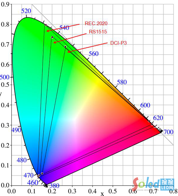 RS-1515色域和DCI-P3色域的對比