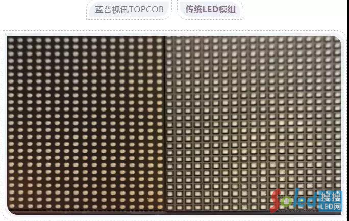 藍(lán)普視訊研發(fā)了TOP COB技術(shù),TOP COB技術(shù) 屬于燈板面半封裝工藝技術(shù),采用先進(jìn)的新型納米級透明材料對其基板及燈面進(jìn)行膠體渡覆。藍(lán)普視訊表示TOP COB產(chǎn)品能夠攻克在正常使用時出現(xiàn)的墨色不均問題。