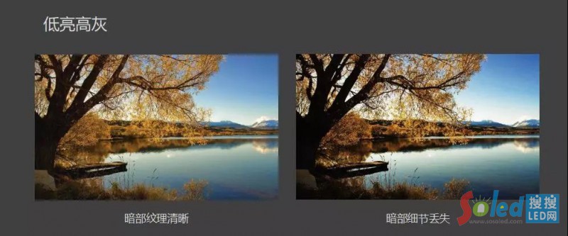 即使在低亮度下顯示屏灰度表現(xiàn)幾乎完美,其顯示的畫面層次感和鮮艷度高于傳統(tǒng)顯示屏,也能表現(xiàn)出的圖像細節(jié)更多,無信息損失。