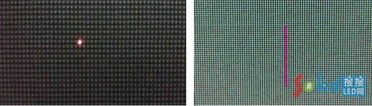 ▲圖一、LED顯示屏不良的短路、列亮現(xiàn)象