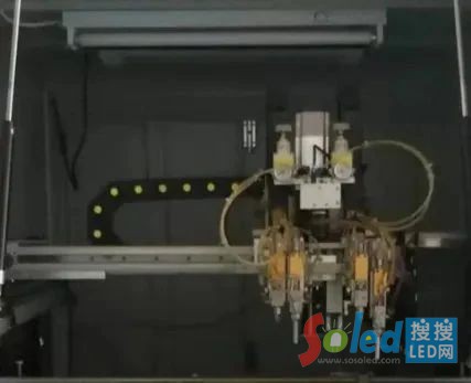 其過(guò)程是將經(jīng)過(guò)(SMT)表面貼裝的工藝制作的燈板,經(jīng)過(guò)72小時(shí)的老化過(guò)程之后,在燈板的表面進(jìn)行表面覆膜,形成所謂的保護(hù)層,可以將導(dǎo)電引腳包裹,隔絕潮濕、水氣影響,如圖三。