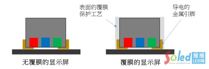 對(duì)于一般防護(hù)等級(jí)為IP40(IPXX,前X防塵、后X防水)的LED顯示產(chǎn)品,具備有效提升LED燈面的防護(hù)等級(jí)工藝、提供防磕碰效果、避免掉燈情形發(fā)生以及降低整屏壞點(diǎn)率(PPM)等優(yōu)勢(shì),這類解決方案目前已經(jīng)對(duì)應(yīng)市場(chǎng)需求,生產(chǎn)成熟,并且也不會(huì)過(guò)度增加整體成本負(fù)擔(dān)。