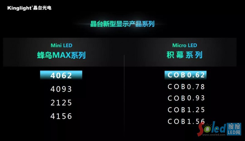 今年晶臺已在Micro LED領(lǐng)域推出P0.6級點間距全新方案,創(chuàng)新性地采用薄膜式超薄型的封裝技術(shù),具備超高可靠性、高對比度、高亮節(jié)能、寬色域等顯示優(yōu)勢。