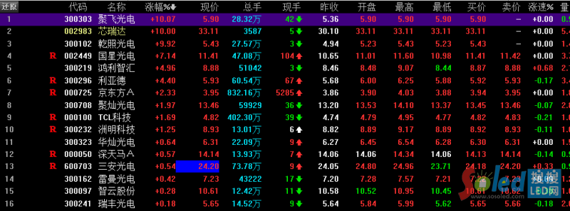 本刊訊:今日Mini LED板塊高開拉升,聚飛光電、乾照光電、芯瑞達(dá)漲停,利亞德、瑞豐光電等跟漲。