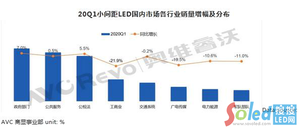 突如其來的新冠肺炎疫情給國(guó)內(nèi)經(jīng)濟(jì)帶來嚴(yán)重的影響,一季度國(guó)內(nèi)GDP同比下降6.8%,各行各業(yè)都受到了不同程度的損失。受疫情影響,2020年一季度小間距LED銷額15.6億元,同比下降14.2%,銷售面積35.9K平米,同比下降3%。