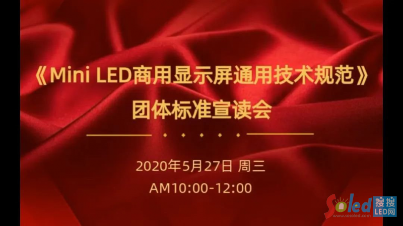 2020年5月27日,《Mini LED商用顯示屏通用技術(shù)規(guī)范》團(tuán)體標(biāo)準(zhǔn)宣讀會(huì)順利舉辦,這標(biāo)志著全球首個(gè)Mini LED商用顯示屏團(tuán)體標(biāo)準(zhǔn)正式發(fā)布!