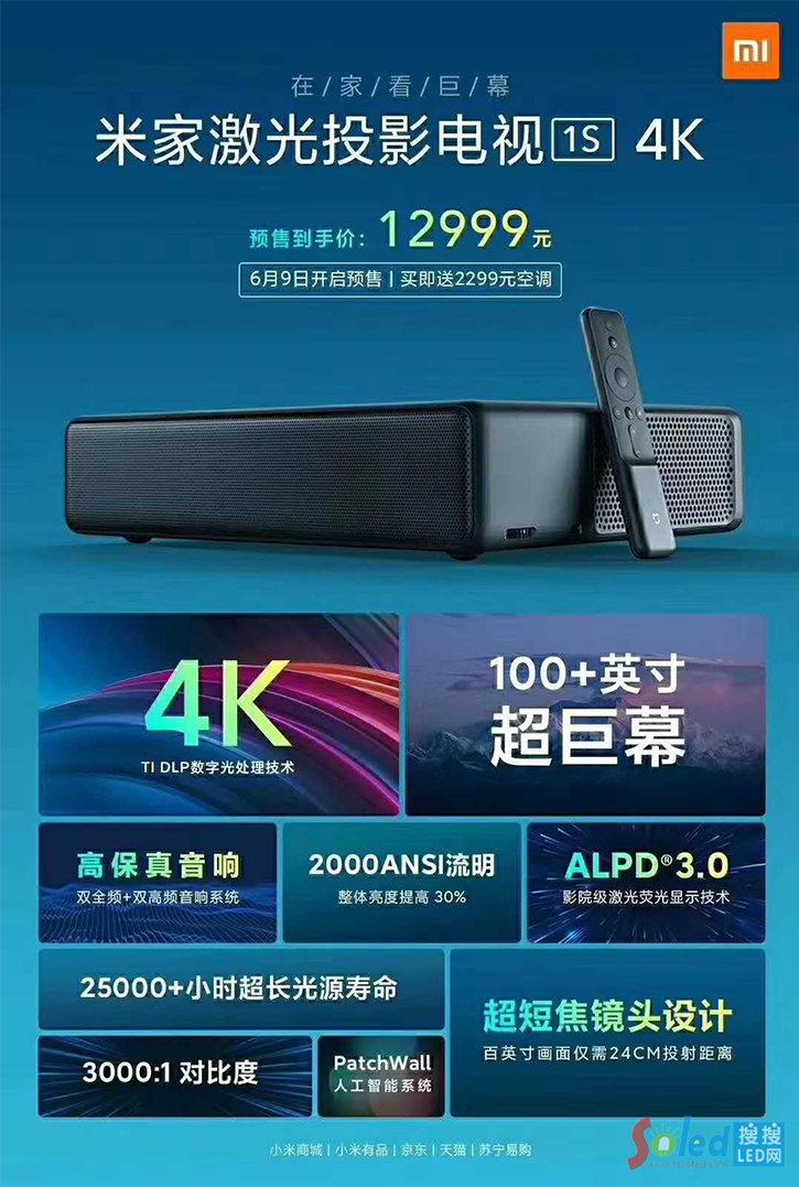疫情過后,適逢618來臨,各城市狂發(fā)消費(fèi)券。激光電視廠商動(dòng)作頻繁,繼峰米在5月份推出12999元激光電視Cinema Pro后,米家也推出同款4K新品米家激光投影電視1S,到手價(jià)12999元,買即送2299元空調(diào)。