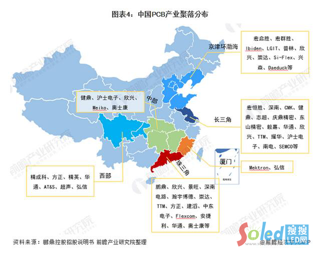 從地區(qū)分布來看,目前中國PCB產(chǎn)業(yè)已經(jīng)基本形成了穩(wěn)定的產(chǎn)業(yè)集群,國內(nèi)的一千多家PCB企業(yè)主要分布在珠三角、長三角和環(huán)渤海等電子行業(yè)集中度高、對基礎(chǔ)元件需求量大并具備良好運(yùn)輸條件、和水、電條件的區(qū)域。此外,中國有著健康穩(wěn)定的內(nèi)需市場和顯著的生產(chǎn)制造優(yōu)勢,吸引了大量外資企業(yè)將生產(chǎn)重心向中國大陸轉(zhuǎn)移。