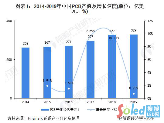 核心提示:受中美貿(mào)易戰(zhàn)的影響,2019年中國PCB產(chǎn)值規(guī)模增長有所放緩,全年產(chǎn)值約為329億美元,同比增長0.73%。中國是全球最大的PCB生產(chǎn)地,