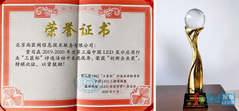 “創(chuàng)新企業(yè)獎”是行業(yè)內(nèi)對平臺的認(rèn)可,尚匠網(wǎng)將繼續(xù)前行,為LED顯示屏行業(yè)輸送一支優(yōu)秀的工程服務(wù)精英團(tuán)隊,匠心打造精品工程,共同弘揚(yáng)“工匠精神”。