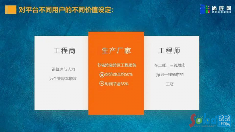 針對目前存在的問題,尚匠網(wǎng)”開創(chuàng)了顯示屏行業(yè)的一種新型服務(wù)模式,構(gòu)建了一個LED顯示屏服務(wù)線上對接平臺,涵蓋售前、售中、售后全流程服務(wù)。服務(wù)雙方只需對接平臺,就能獲得本土化工程服務(wù),這種服務(wù)模式也可稱作是LED顯示屏行業(yè)的“滴滴”。