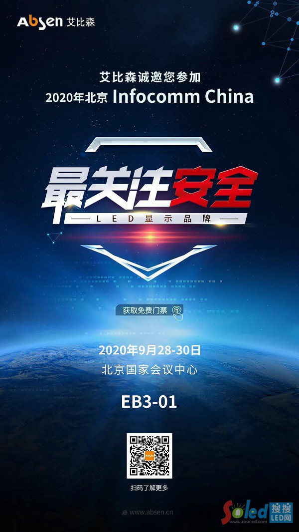 為響應并支持國家落實疫情防控工作,一再延期的北京InfoComm China 2020展將于2020年9月28-30日在北京國家會議中心盛大開幕,你的等待,不會被辜負。艾比森已經準備就緒,將以“最關注安全LED顯示品牌”為主題,攜帶眾多明星產品,在北京國家會議中心EB3-01展位,為您展示最前沿的智慧控制室解決方案、5G燈桿互動解決方案和會議室解決方案等。提前收好這份攻略,最新黑科技搶先預賭。