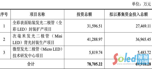 根據(jù)定增方案顯示,公司本次發(fā)行擬募集資金總額不超過6.99億元,其中, Mini LED背光封裝生產(chǎn)項目擬使用3.7億元,全彩LED封裝擴產(chǎn)項目擬使用2.75億元,Micro LED技術(shù)研發(fā)中心項目擬使用5483.72萬元。