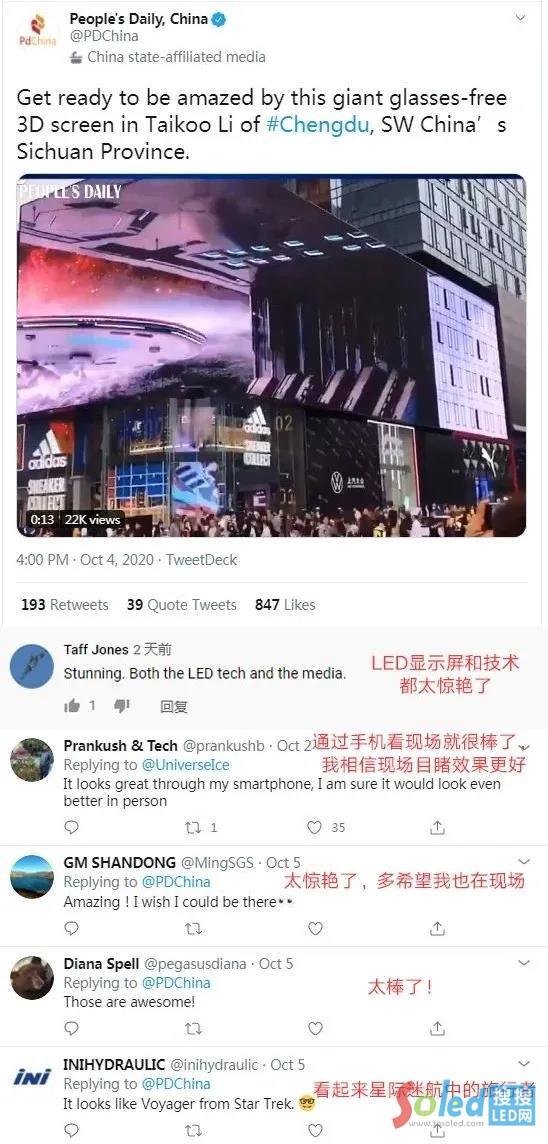 近日,聯(lián)建光電為成都太古里盈嘉大廈打造的裸眼3D飛船巨幕震撼點亮,炫酷的黑科技顯示瞬間引爆全國乃至海外媒體轉(zhuǎn)發(fā)評論,微博實時熱搜TOP5,累計總點擊量達3.2億。大量粉絲紛紛趕至現(xiàn)場感受聯(lián)建光電大屏所帶來的極致視覺體驗,現(xiàn)場可謂人頭攢動,更有眾多海外網(wǎng)友對中國黑科技瘋狂點贊,刷新了世界對中國顯示科技的新認知,再現(xiàn)中國“智”造新風采。