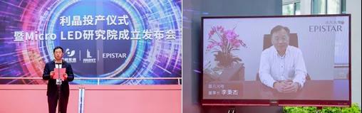 圖注:利亞德董事長李軍先生、晶元光電董事長李秉杰先生分別為投產(chǎn)儀式和研究院成立致辭
