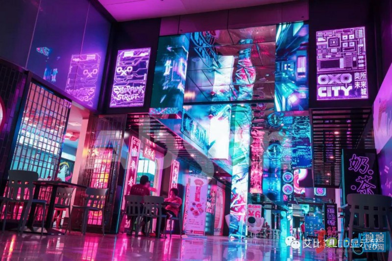 基于藝術(shù)、科技、未來的定位,奧所未來城在BI層打造了一條賽博朋克風(fēng)的文化美食街。LED顯示屏帶來的智能數(shù)字影像應(yīng)用,全面迸發(fā)著科技感。