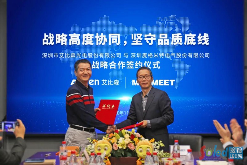 2020年11月10日,“戰(zhàn)略高度協(xié)同,堅守品質(zhì)底線”艾比森與麥格米特戰(zhàn)略合作簽約儀式在艾比森總部順利舉行。艾比森董事長丁彥輝先生及麥格米特董事長童永勝博士率雙方高層領(lǐng)導(dǎo)出席了簽約儀式。