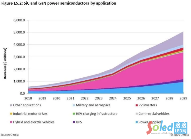 根據(jù)Omdia的《2020年SiC和GaN功率半導(dǎo)體報(bào)告》,全球SiC和GaN功率半導(dǎo)體的銷售收入,預(yù)計(jì)從2018年的5.71億美元增至2020年底的8.54億美元。預(yù)計(jì)未來(lái)十年,每年的市場(chǎng)收入以兩位數(shù)增長(zhǎng),到2029年將超過(guò)50億美元。
