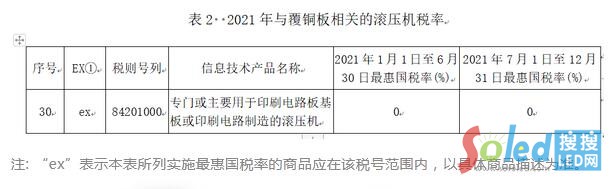 另外,33號文中附表2《部分信息技術(shù)產(chǎn)品最惠國稅率表》中,有與覆銅板相關(guān)的滾壓機(jī)稅率(見表2)。