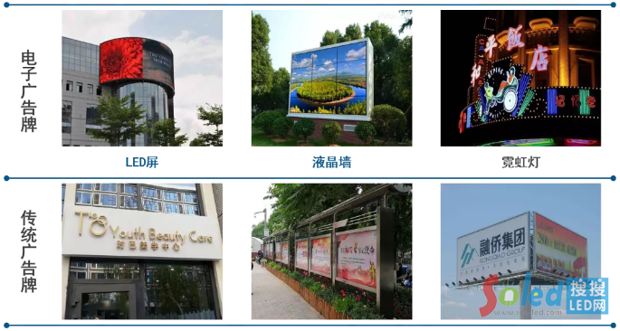 戶外廣告是城市街區(qū)景觀的重要組成部分,相當于城市形象名片。隨著信息化、智能化的發(fā)展,大型數(shù)字標牌將逐漸替代燈箱廣告、霓虹燈等其他類型,重點體現(xiàn)在LED大屏和液晶墻等細分產(chǎn)品的蓬勃發(fā)展上。
