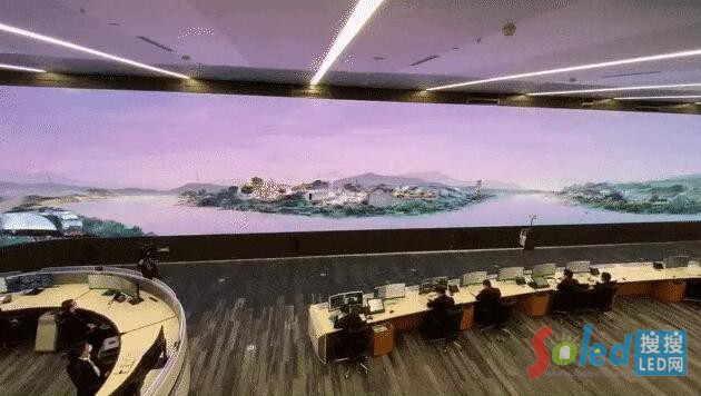 該項(xiàng)目總面積達(dá)227m²。一層指揮調(diào)度中心大屏采用P0.9 Micro LED顯示屏,面積216m²,整屏超過(guò)7個(gè)8K分辨率,接近2.5億像素;二層?xùn)|西兩側(cè)會(huì)議室采用兩塊P0.7 Micro LED顯示屏。