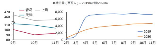 但在下半年,國內(nèi)出現(xiàn)的反復(fù)零星疫情爆發(fā)和國外病毒變異,都使原本逐漸恢復(fù)生活常態(tài)的消費者對出行和可選消費場景表現(xiàn)出更為審慎的態(tài)度,疊加多地在近日發(fā)通知倡導(dǎo)“原地過年,非必要不返鄉(xiāng)”,消費者對市內(nèi)交通(公交地鐵)、娛樂場所和影院這類密閉空間的場所更易持消極態(tài)度:截至11月,全國中心城市客運總量仍同比下滑35.4%,并且可以看出零星疫情對客運量,尤其是二線城市的客運量,有較強的影響,與此形成對比的是,乘用車銷量在7月同比轉(zhuǎn)正,并持續(xù)5個月出現(xiàn)7%~9%的同比增長;封閉式的影院也受到國家的管控影響,國慶票房只恢復(fù)至去年的76%,11月票房僅為去年的5成,并且需要注意的是,為應(yīng)對線下嚴格的防疫需求國內(nèi)外均有頭部公司開始試水線上同步上映模式。