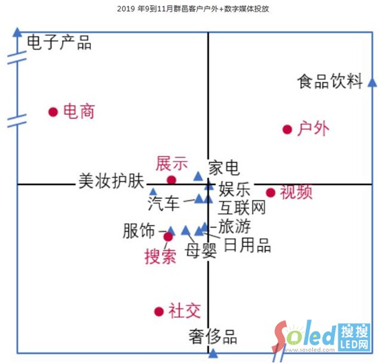 戶外媒體在2019年具有較強的獨立性:在媒介屬性上來看,與社交、電商兩類數(shù)字媒體可以形成投放需求互補,即視覺獨占類展示廣告(廣覆蓋)-社交(特定群體投放)-電商(購買渠道)進行廣告投放,因此我們看到不同行業(yè)的客戶因行業(yè)性質(zhì)不同,針對各自需求產(chǎn)生不同偏好。