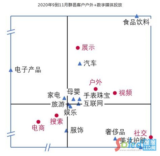 戶外廣告在此階段受益于人群覆蓋面廣和占據(jù)線下消費者的生活、購買場景這兩大地理位置優(yōu)勢,更易獲得需要占領(lǐng)消費者心智的快消類以及品牌類廣告主的青睞。