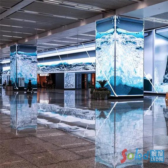 上海虹橋樞紐的奧所未來城,東連虹橋機場T2航站樓,西接虹橋火車站,是全國首個定位于科技和藝術(shù)的沉浸式樞紐商業(yè)體。奧所未來城規(guī)劃建設(shè)LED顯示屏6000㎡,目前可打卡面積達1800㎡,其中最大整屏長達113米,覆蓋整個層高,可以給人們帶來巨大的視覺沖擊力。該項目由艾比森承建,根據(jù)不同的場景設(shè)計了不同面積、造型、功能的LED顯示大屏。構(gòu)造了一個沉浸式的樞紐商業(yè)體,視覺效果與商業(yè)價值兼具。西大廳700平方米的巨屏更鋪滿整個墻面,給人置身大海的沉浸體驗。再加上8根四面完全包裹LED顯示屏的大柱子,讓水缸的效果更加突破3D體驗。總面積達到1275平方米的LED顯示屏群體,吸引不少人駐足觀看,并拿出手機拍攝,第一時間留下魔都風(fēng)采。