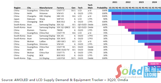 有8座6代線OLED產(chǎn)線和5座Gen8.5或更高世代OLED產(chǎn)線的投資計(jì)劃。
