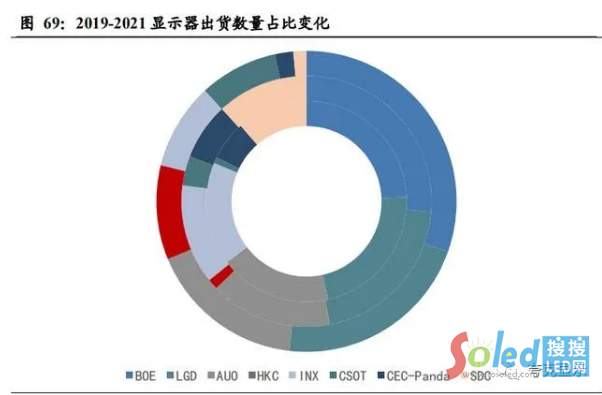 對京東方而言,作為顯示器面板領域的龍頭廠商,在并購中電熊貓(CEC Panda)以后,其市場地位將獲得明顯提升,預計2021年其合并后的市場份額合計將可達到 33%,較 2020 年提升7個百分點,在三星顯示的退出過程中,迅速占據(jù)更多電競、高分辨率等增值細分市場的份額,并擴大 IPS 在中高端市場競爭優(yōu) 勢也是其2021年的擴張路線之一。