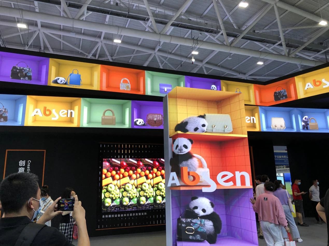 艾比森創(chuàng)意零售顯示將前沿AR技術與高清大屏結合打造3D視衣系統,觀眾在現場可實現“一秒換裝”,艾比森Micro LED產品具有畫質均衡細膩、可視度佳、低功耗、智慧顯示、產品輕薄等