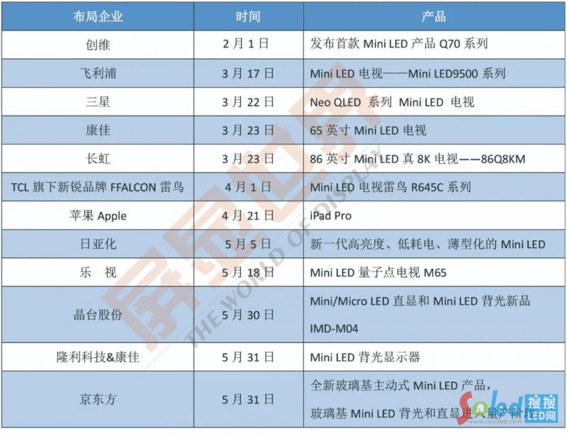 盤點上半年企業(yè)布局Mini LED的概況