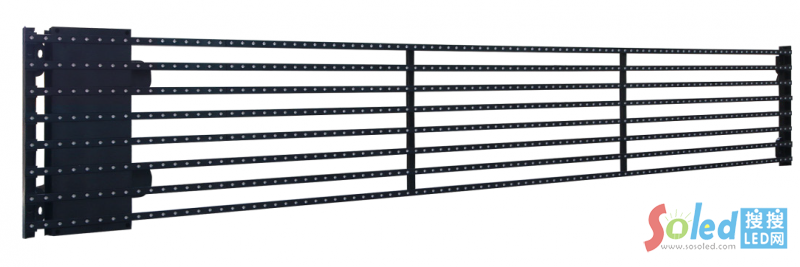 貼膜屏 : 裸晶植球 , 針尖散熱 , 散熱好壽命長 、3.5KG/㎡超輕、厚度3mm超薄、屏體背后無任何元器件,簡潔鏤空高。主要應用于幕墻玻璃、中庭圍欄、櫥窗等等。