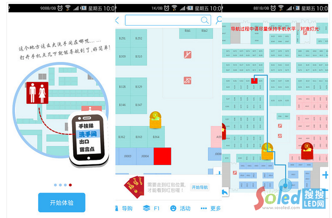 正如上文所說,因無線信號為載體的導(dǎo)航技術(shù),需要聯(lián)網(wǎng),信號強(qiáng)弱通常受外界因素干擾,導(dǎo)致定位不準(zhǔn),而燈光室內(nèi)定位技術(shù)無需聯(lián)網(wǎng),更不受外界環(huán)境干擾,只要安裝了帶有光通信功能的LED燈,燈光正常照射就可實(shí)現(xiàn)精準(zhǔn)導(dǎo)航,且刷新速度極快,可達(dá)到2次/秒,即使在多路徑狀況下,也可瞬間定位。無處不在的燈光,看似平淡無奇,實(shí)則在定位過程中有著嚴(yán)格的匹配要求。“燈光室內(nèi)定位采用的是全球最先進(jìn)的白光LED技術(shù),在原基礎(chǔ)上加入光通信功能,非LED光源不可。”洲明科技董事長林洺鋒告訴記者。