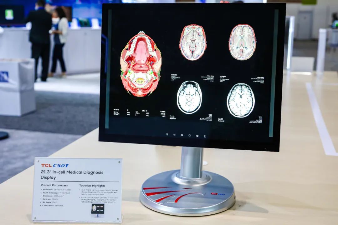 TCL華星還展出了一款21.3" in-cell、分辨率為26401980的彩色醫(yī)療顯示器,該產(chǎn)品色深10bit,可提供出色的彩色和灰階圖像。其520萬像素加上1000 cd/m²高亮度和2000:1高對比度,有助于辨別微小的細節(jié),確保醫(yī)師做出準確的診斷。該顯示器還集成了in-cell touch功能,可實現(xiàn)快速平移和縮放,提高控制速度,實現(xiàn)流暢的圖像處理。保護性抗反射玻璃蓋可減少表面反射,增強圖像清晰度,從而提高查看舒適性,降低疲勞。從顯示效果到操控體驗,都體現(xiàn)了TCL華星從實際應用場景出發(fā),不斷追求極致的創(chuàng)新初心。