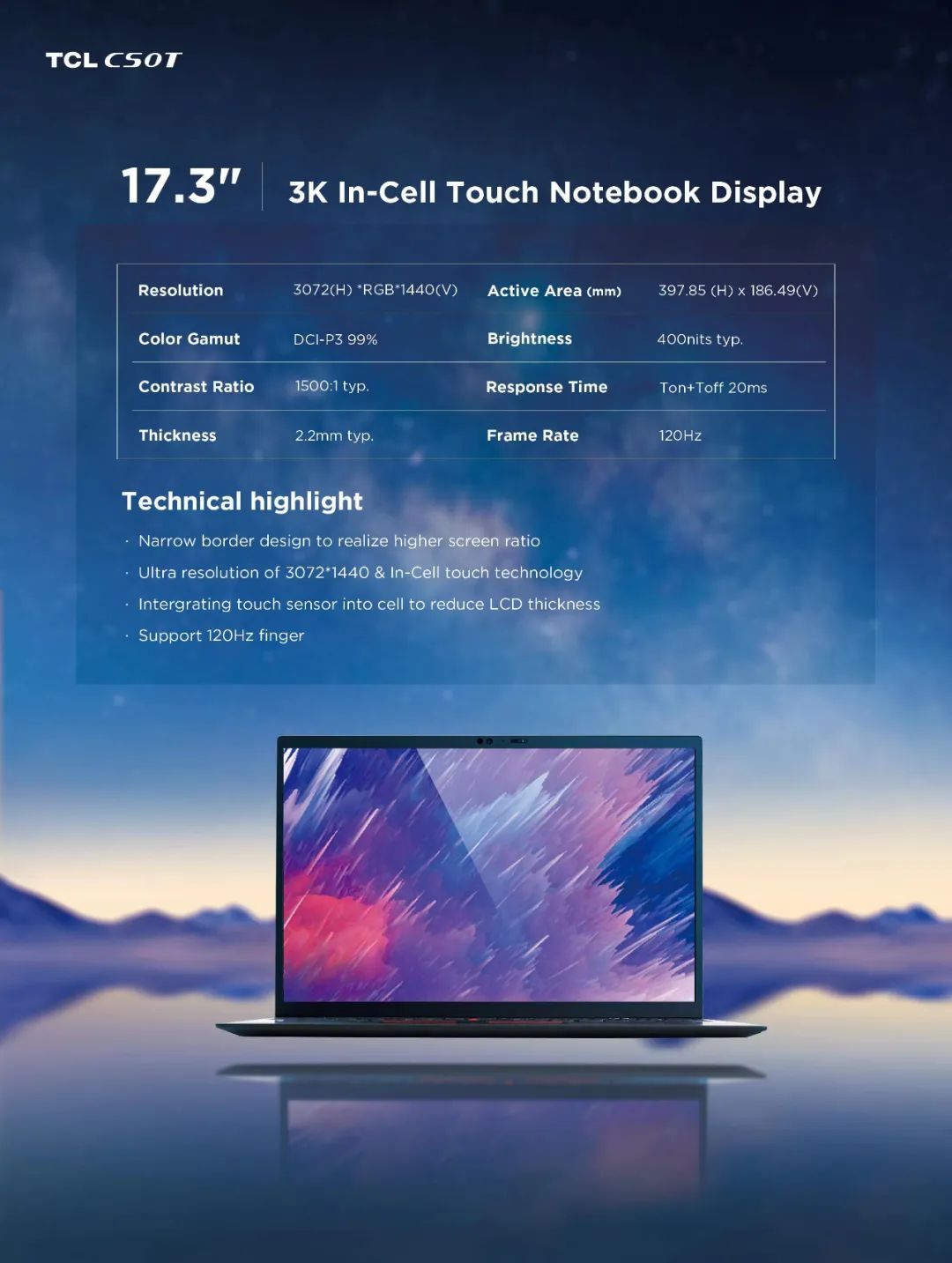 17.3" 3K輕薄in-cell觸控屏