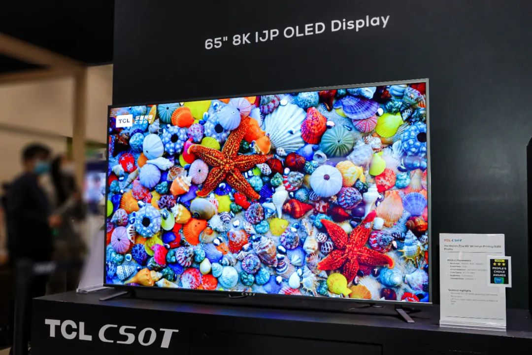 本次SID現(xiàn)場,TCL華星展示了多款噴墨打印OLED產(chǎn)品,其中包含全球最大尺寸的噴墨打印OLED產(chǎn)品——65" 8K噴墨打印OLED,此款產(chǎn)品為TCL華星與JOLED聯(lián)合開發(fā)。作為大尺寸OLED領(lǐng)域「另辟蹊徑」的創(chuàng)新產(chǎn)品,這款8K產(chǎn)品擁有高達3300萬個像素,可帶來更加清晰細膩的畫面表現(xiàn)。產(chǎn)品采用氧化物TFT背板驅(qū)動,頂發(fā)射器件結(jié)構(gòu),開口率達到62.9%,DCI-P3色域達到99%,極致的色彩表現(xiàn)加上百萬級對比度,薈萃呈現(xiàn)出無與倫比的睛彩畫質(zhì)。
