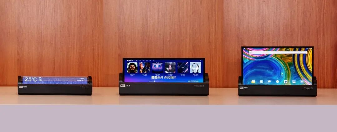 這款TCL華星和JOLED聯(lián)合開發(fā)的14" 噴墨打印OLED卷軸屏,可以自由變換多種形態(tài),數(shù)字顯示鬧鐘、音樂播放器、顯示器,多種應用形態(tài)融入家居場景中,SID上亮相的它也為大家?guī)砹岁P(guān)于便攜式中尺寸顯示的新想象。它的卷曲半徑<20mm,在高溫高濕條件下,卷曲壽命高達10萬次。屏幕內(nèi)置的AI補償算法,可以使它的畫面色彩更加明艷通透,顯示效果也得到了大幅提升。