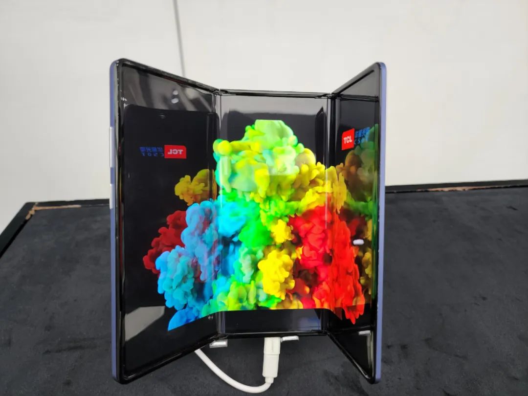 TCL華星多年來深耕可折疊領(lǐng)域,探索柔性顯示的無限應用空間。本次展示的360°折疊產(chǎn)品集成了內(nèi)折和外折柔性屏技術(shù)及360°Stress free自補償鉸鏈的領(lǐng)先技術(shù),通過20萬次彎折的壽命檢驗,使用Pol-less模組減薄技術(shù),實現(xiàn)內(nèi)折R1.5到外折R6無極切換。外折時可作為小尺寸智能手機使用,一手掌握動態(tài)信息,可滿足日常娛樂觀影;內(nèi)折時小巧玲瓏,便于攜帶。同時,產(chǎn)品內(nèi)置主動筆,輕松應對手寫、繪圖等商務(wù)應用場景,它在本次SID上的亮相,也為折疊屏手機的熱度再添一把火。