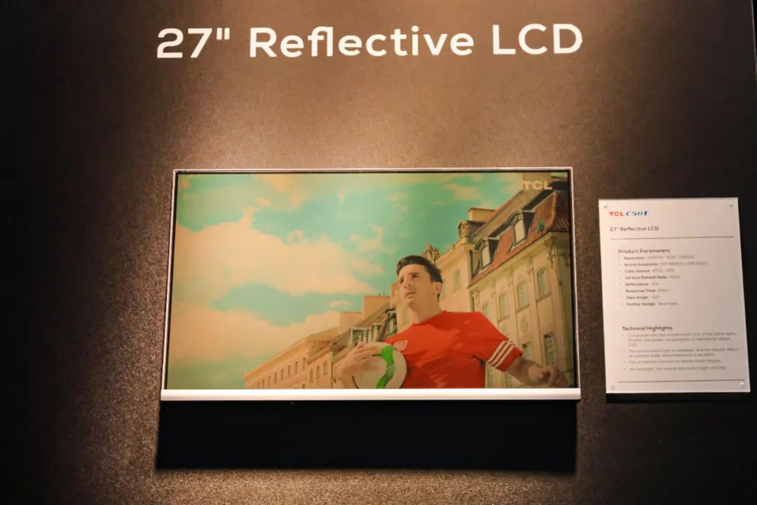 這款產(chǎn)品是TCL華星開發(fā)的反射式顯示LCD,最大的亮點是無需背光,可通過外界環(huán)境光實現(xiàn)畫面顯示,整體輕薄精美;更低能耗,可用作廣告牌或公交站牌等戶外顯示應用場景,為人們帶來更低碳環(huán)保的顯示方案。區(qū)別于一般電子紙等反射式產(chǎn)品,此產(chǎn)品刷新頻率為60Hz,視頻播放更加流暢,可滿足各種現(xiàn)代化廣告的戶外展示要求,顯示效果更生動真實。