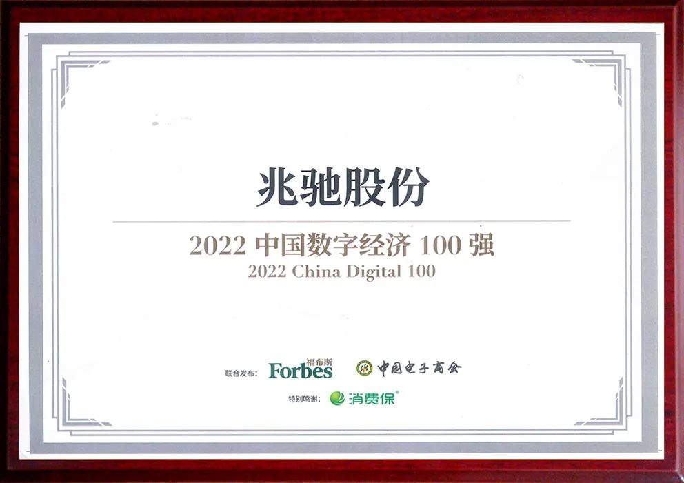 8月20日,由福布斯中國、中國電子商會(huì)聯(lián)合主辦,《消費(fèi)電子》雜志社、消費(fèi)保承辦的“2022中國數(shù)字經(jīng)濟(jì)100強(qiáng)”發(fā)布盛典于美麗富饒的江西上饒舉行。兆馳股份憑借在數(shù)字經(jīng)濟(jì)領(lǐng)域突出的綜合實(shí)力表現(xiàn)成功入選,榮獲“2022中國數(shù)字經(jīng)濟(jì)100強(qiáng)”